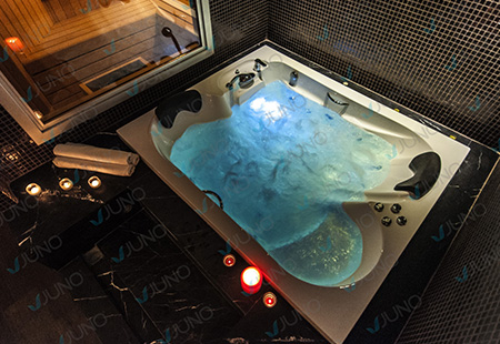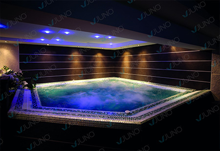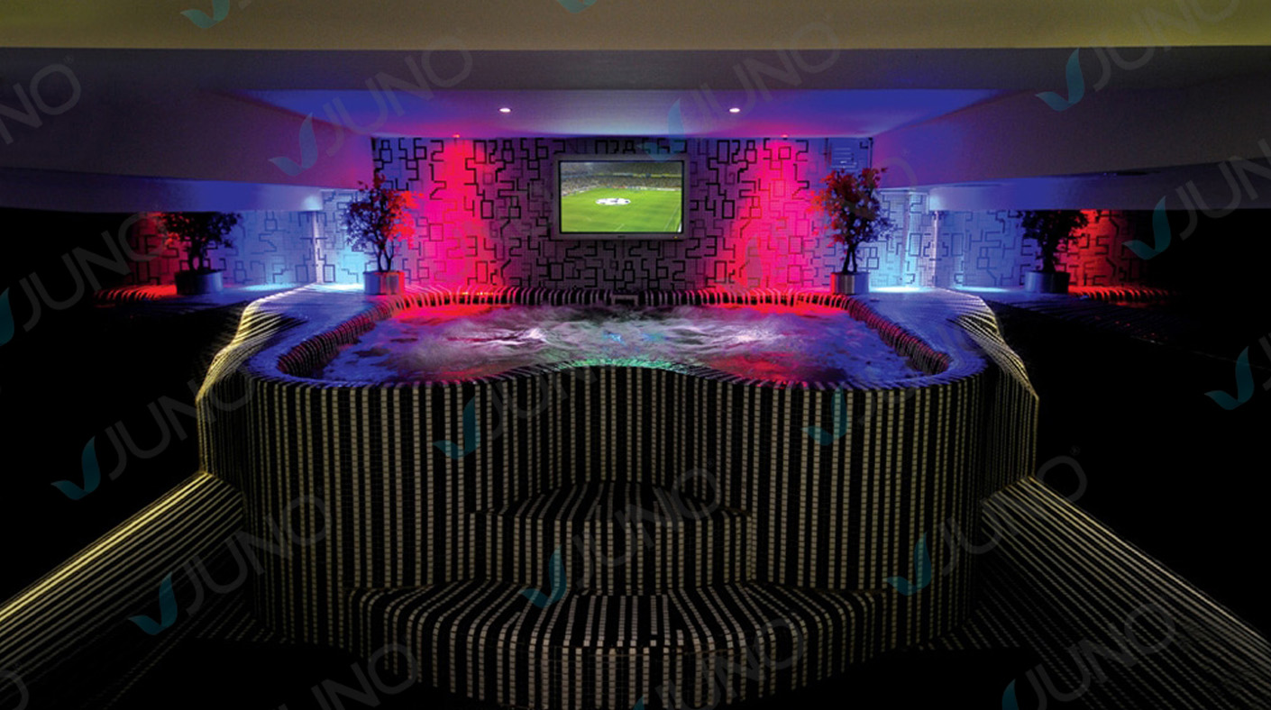 Hydrotherapy pools are specialized wellness environments that utilize user-controlled temperature settings combined with strategic jets and nozzles to provide invigorating full-body massages. At Juno Spa, we engineer these pools using advanced high-tech composite materials. These durable yet lightweight composites are resistant to deformation, offering our architects limitless design possibilities to create structures that perfectly complement your space. All design and manufacturing processes are conducted at our state-of-the-art facility in Istanbul.